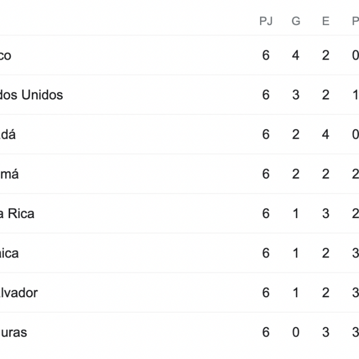 Tabla de Posiciones de la Eliminatorias CONCACAF. Actualización Dom 10 Oct 2021 809 pm. De momento y tras la primera jornada triple méxico es el equipo que lidera la tabla.